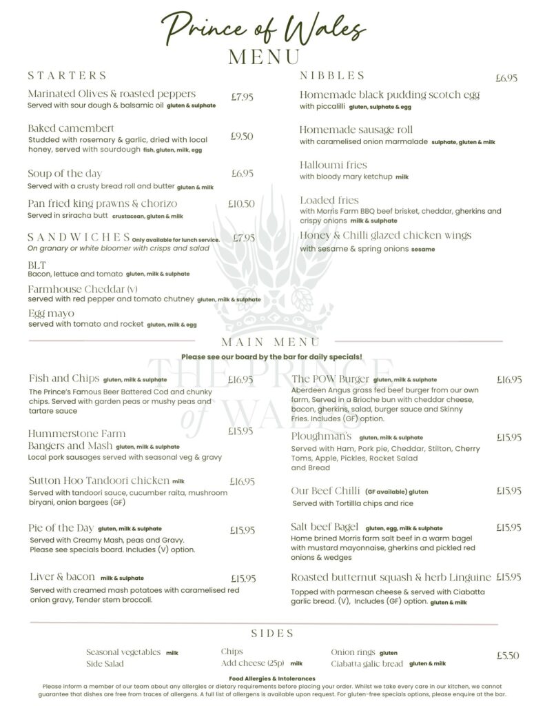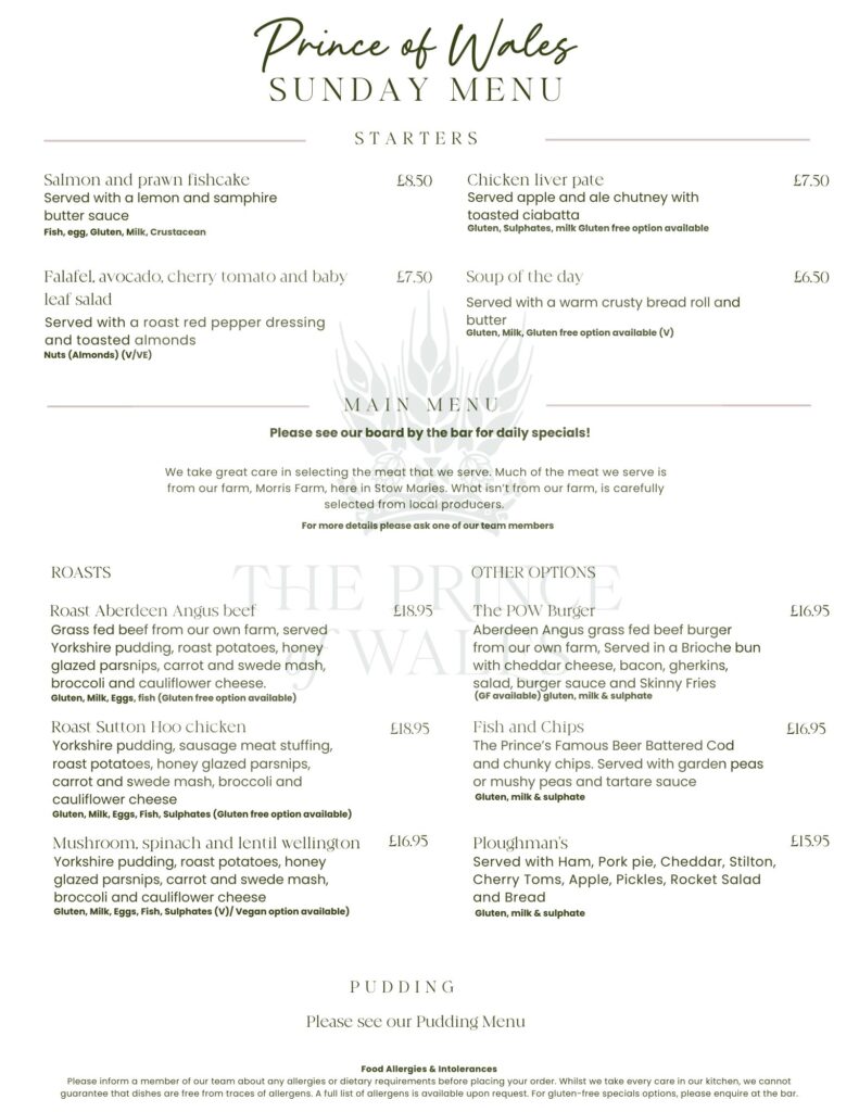 If you are looking for an Essex country pub for a Sunday roast, then rest assured that roasts are a big thing for us here at the Prince of Wales. We take great pride in the meat we choose. Our roasts are hearty with all the trimmings. We offer two types of roasts each week plus a vegetarian option and we alternate between lamb and beef. They are served with all the trimmings. The beef and lamb is from our farm. We source the pork from White Gates Farm and chicken from Sutton Hoo. Here is an example roast dinner.