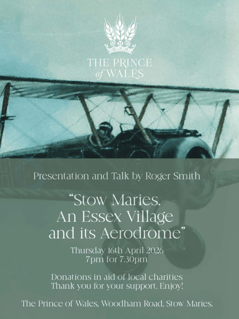 Thursday 16 April: A presentation and talk – An Essex village and its aerodrome. 7pm for 7.30pm start